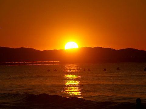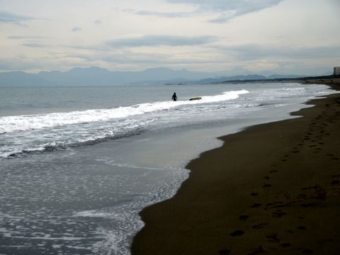 海は穏やか、サーファー少ない風もなく穏やかな海、夕方には北風が吹いて寒くなってきた。 |