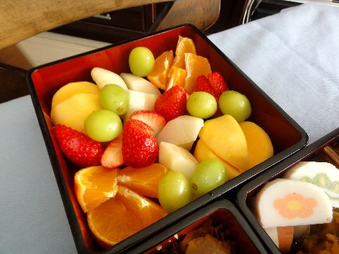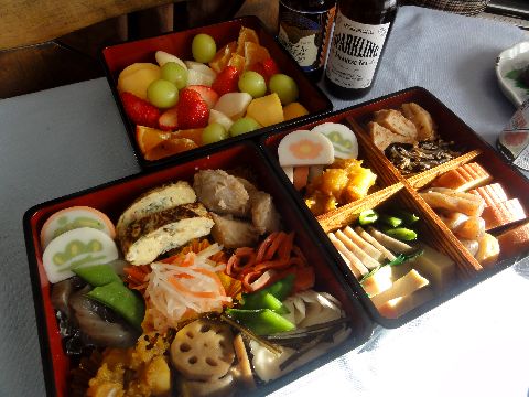 今年のおせち例年の通りのメニュー?夕食用には柿の葉寿司を注文、昨日午前中に届いた。 |