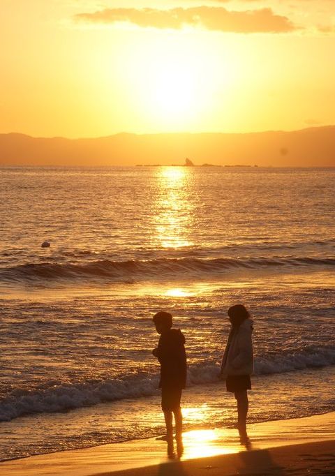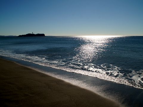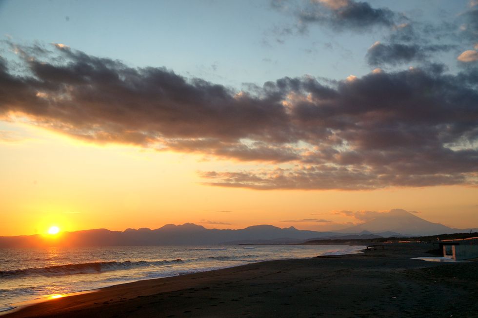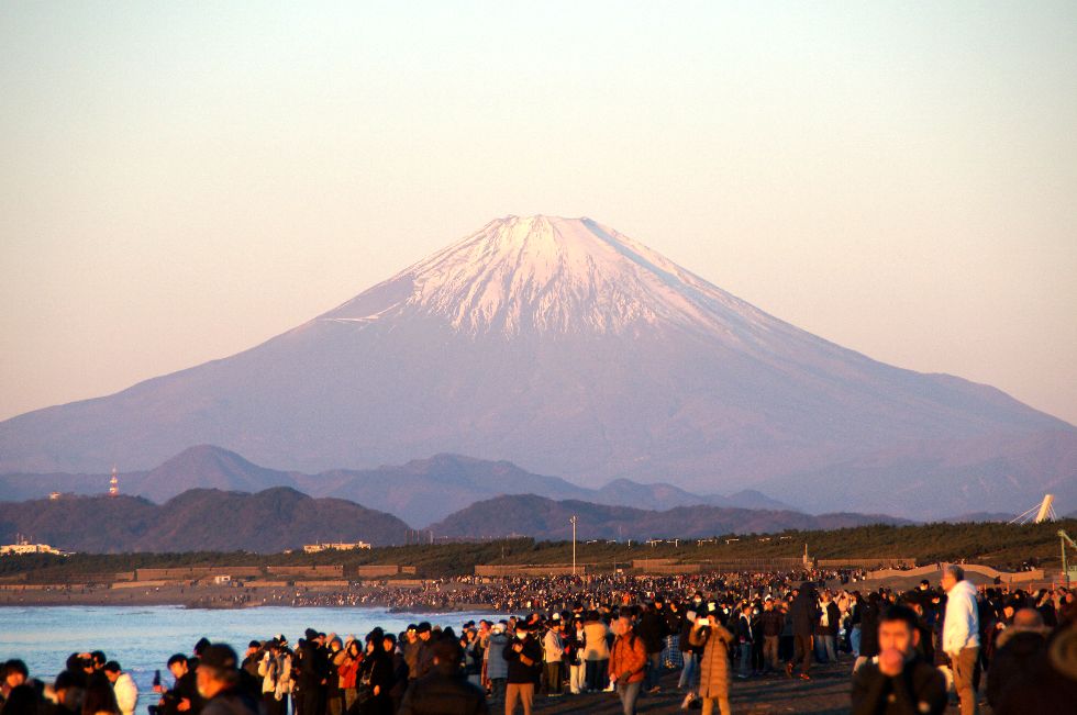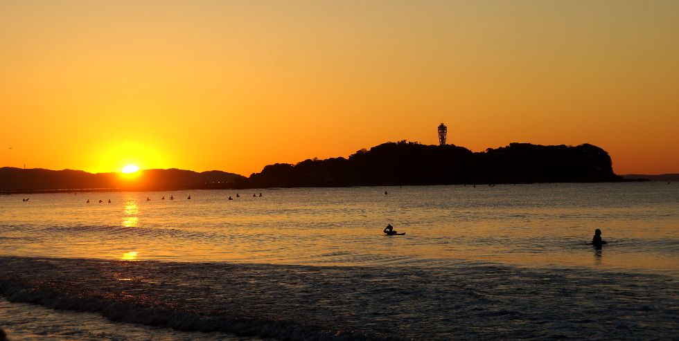 江の島の東に初日の出@辻堂海岸