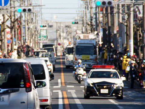 箱根駅伝・復路8区:空飛ぶランナー復路は反対側から撮影、観客が少なく車もほぼ通らず撮影しやすい。 使用カメラ:SONY α700+SIGMA 18-200mm ZOOM |