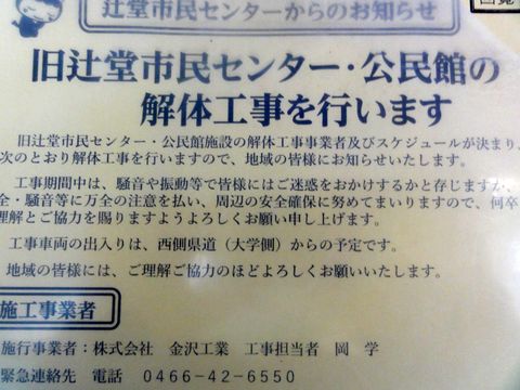 旧市民センタは取り壊しに新市民センタへ移転後も放置だった旧市民センタがやっと解体工事を着手に、壊すのも予算が必要なので直ぐにはできない。 |