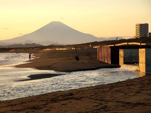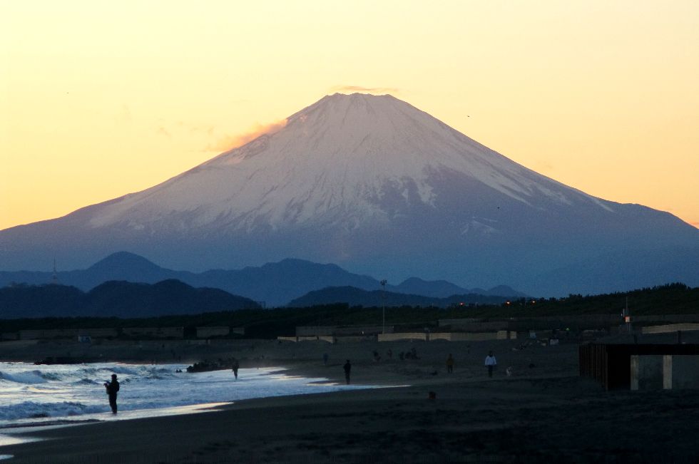 夕暮れの海岸、富士山使用カメラ:SONY NEX6+LA-EA2+MINOLTA 17-70mm,MINOLTA 75-300mm Old |