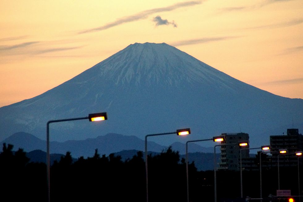富士山夕景:歩道橋から