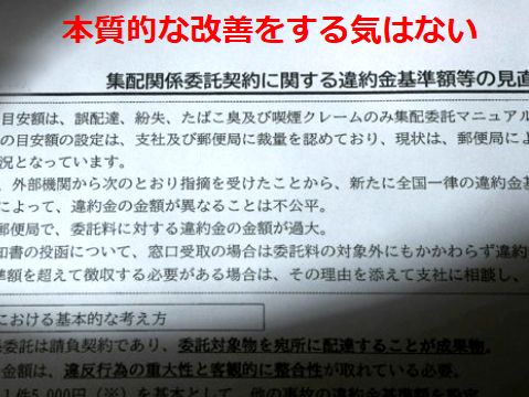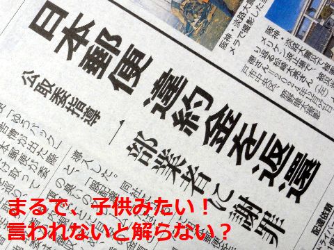 言われないと直さない、まるで子供!の日本郵政身内には大甘なのに、下請けには厳しいという日本郵政のお役所体質、支持する人がどんどん減って厳しくなるばかり。 |