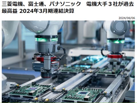 三菱電機も順調に4兆円超えにどちらかと言えば保守的でITなどとは縁遠い印象の三菱電機もIT中心へと変身中、儲けのでない車載機器事業は切り離しの方向。 最近、車載機器事業に注力する東芝とは真逆の選択、儲からない事業へ注力するのは直に撤退の可能性大(過去何度も撤退の歴史)。 |