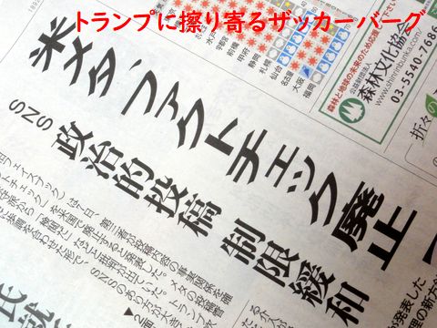 勝手放題を言うトランプ、迎合するザッカーバーグ好き勝手な事を言い張るトランプ、「ウクライナ停戦も1週間でやる」と豪語するが、実態はウクライナ支援停止で脅かして ウクライナに譲歩させる積りのよう。大統領就任を控えて擦り寄るメディアが浅ましい限り、イーロン・マスクは言いたい放題。 |