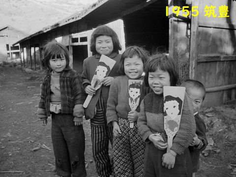 昔の風景から:1955年・1958年昭和30年の筑豊、まだ石炭が良かった時代だが子供たちの姿は全国どこでもこんなものだった。1958年に流行ったホッピング、 あとはフラフープやだっこちゃん人形もこの頃に流行った。 |