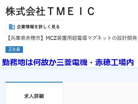最近よく見かけるTMEICの求人広告赤穂事業所(三菱電機・赤穂製作所内)でTMEICが手掛ける超電導磁石の開発要員を募集しているようだが。 |