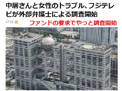 中居の性加害問題、やっと調査開始?海外のファンドから言われてやっと調査開始するフジテレビのいい加減さ、逃げ切れるとでも思っていた? もし社員や幹部の関与が出てくれば、フジテレビの免許停止(廃局)の可能性も大という勤給事態なのに。 |