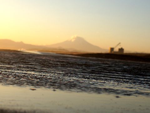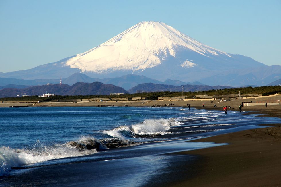 富士山を潮溜まり越しに
