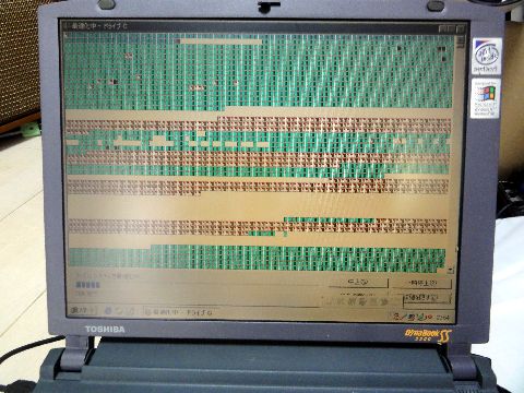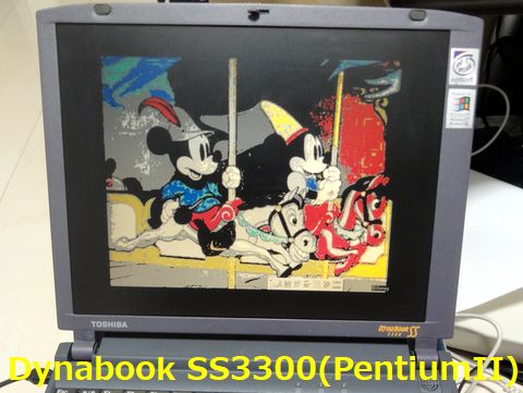 保存機:Windows98/Dynabook SS3300HDDのデフラグも実施、少しは速くなったかな。バッテリは長時間用(6セル)を装着しているが効果は疑問あり。 |