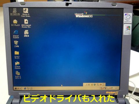Windows98SEの再登場、苦戦中Windows98の時代はSATAなどなくサポートも当然なしなので、IDE-HDDが使えるPCを探すとDYNABOOK SS3300が見つかった。 Windows98入りHDD(IDE)も見つかったので入れ替えて起動、ドライバが大分当たらないので苦戦。USBメモリもドライバなく、 外部からファイルを入れる方法で苦慮、何とかUSBメモリが使えるようになったがビデオのドライバもなくまだまだ苦戦。 |