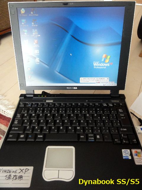 保存機:WinodwsXp/Dynabook SS/S5超薄型、HDDは専用に開発された2インチ(初期のiPodでも使われた)で互換性なく大変。予備のバッテリパックもあり。 |