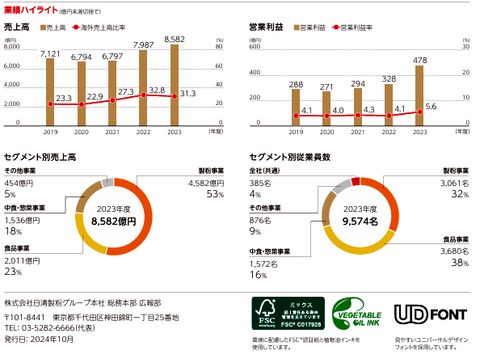気になる会社:日清製粉グループこの会社も規制産業で絶対損しない製粉業界の雄(小麦は政府管理で配分はほぼ固定、だから地方の小さな製粉会社も潰れない、大規模会社は 利益がしっかり出る)で、製粉以外の事業は全部ダメダメという時代が長く続いてきたが、最近は日清製粉ウェルナが元気で宅食事業もあって、 本業は半分程度の規模に(それでも利益は本業が主体か)。海外事業にも手を出したが人材が豊富に居る訳もなく苦戦、現在は何とか改善し 売上の30%超を占めるようになっている。 |