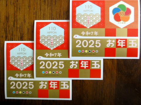 年賀はがき・3枚当選3位の切手シート(2枚だけ)が3枚当っていたので、郵便局で早速交換。 |