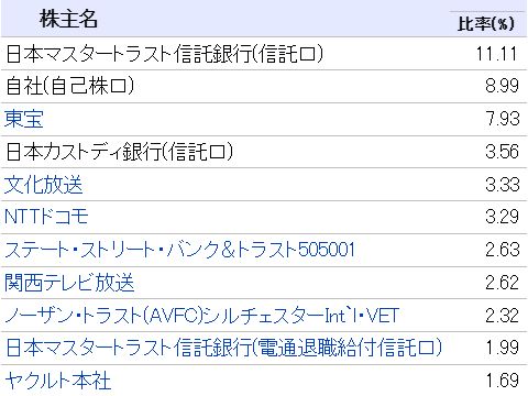 嘘をばら撒くトンデモない奴:N党の立花人の不始末は嘘情報も含めてぼろくそに言うくせに、自分の不始末(嘘をYOUTUBEで垂れ流した)は削除して謝ってお終いにする 身勝手さ一杯。下はフジテレビの株主一覧、NTTドコモや東宝も株主なんだ! |