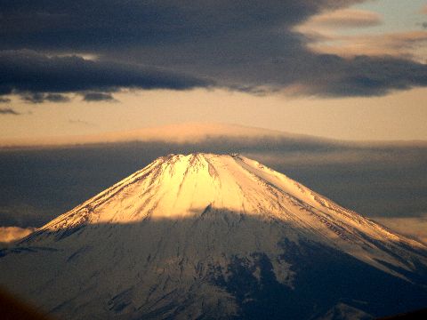 富士山は雲に囲まれ富士山の雲、日没と共に雲が段々と消えてゆくのだが。今日でもう1月はお終い、時間の経つのは早い。 |