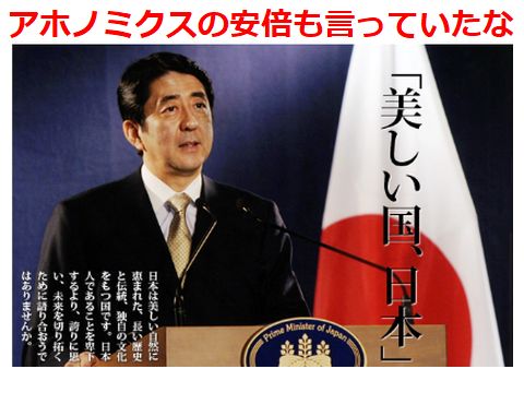 「美しい日本」って何と能天気な・・・まあ能天気なこと、アベも「美しい日本」とか同じような能天気な事を言っていたのを思い出す。 |