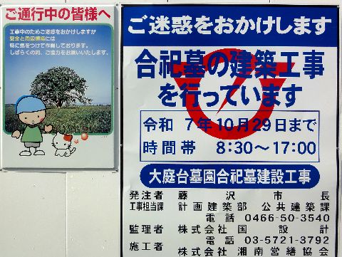 増設部分の工事中合祀墓の設備を増設する工事中、当初はほぼ満員になっている立体墓地の増設工事も計画したが費用の増大で中止し、 どうしても必要な合祀墓のみ建設することになったよう。 |