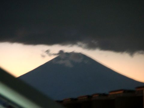 午後から天気が悪化、雨も富士山は見えているが上には真っ黒な雲が掛かっているという異様な風景。 |