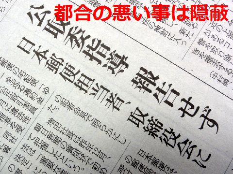 どうしようもない会社「文春の誤報」とアンチ文春は盛り上がっていたが、ライン内容の公開で大しっぺ返しに。 またもインチキ発覚の日本郵便、大事な事をトップに報告せず隠蔽とは呆れるしかない。 |