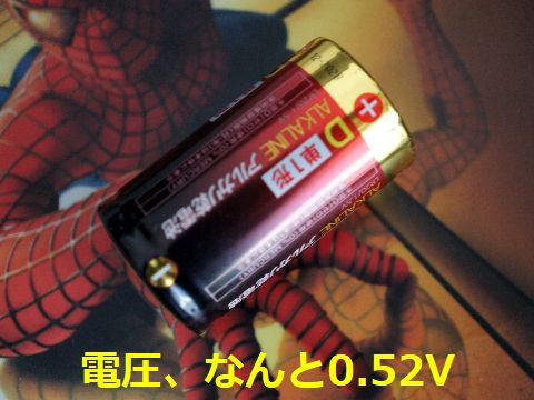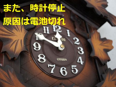 電池切れで鳩時計ストップ鳩が出た状態で停止してしまった、電池の電圧を測ってみたら開放で0.52Vしかない、これでは動かん!電池交換で復帰。 |