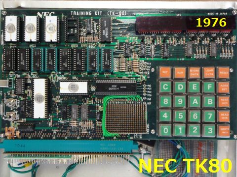 NECのマイコンキット:TK-80個人で買えるマイコンキットして当時大人気だった。88000円と高価なキット、電源は自作、追加メモリやCRTインタフェース なども購入したので高額な投資だったが仕事には役だった。
