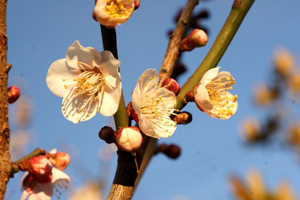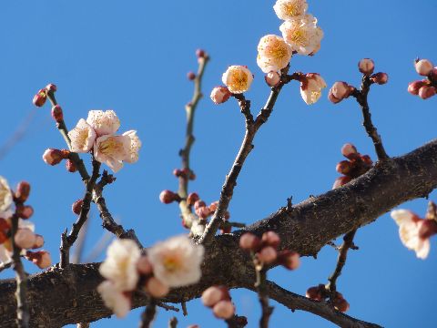 梅が咲き始めた買い物へ行った帰りの公園で見かけた梅の花、まだ満開ではないが。大船フラワーセンターも見頃かな。 |