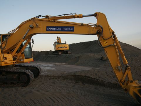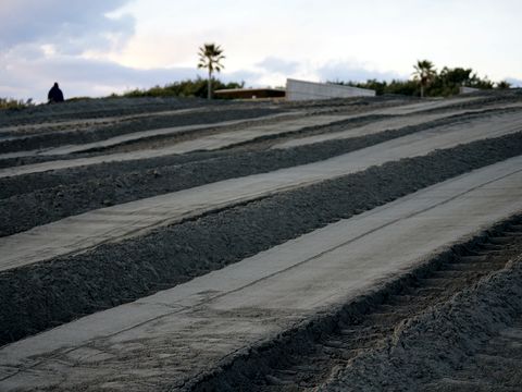 不思議な風景?溜まった砂をならした跡、キャタピラのあとが目立つ。 |