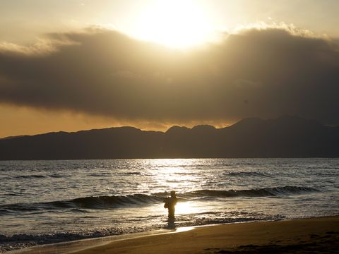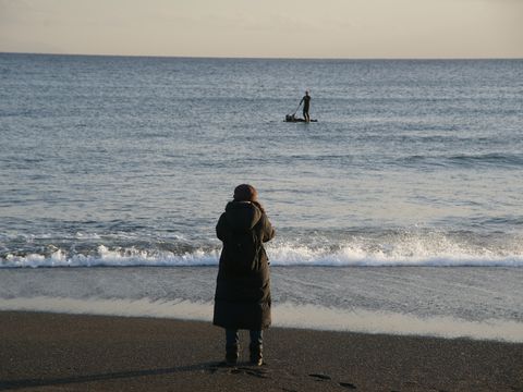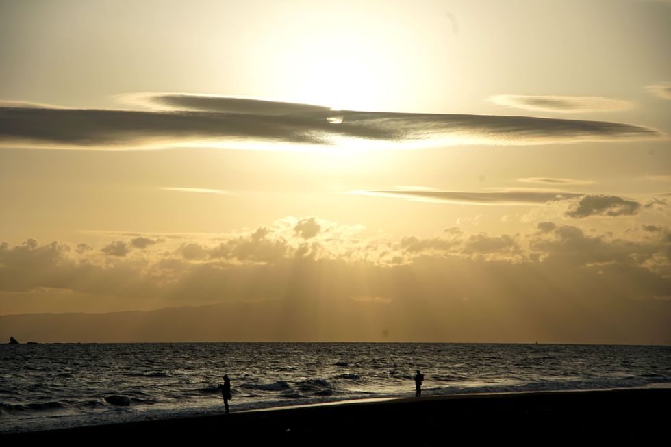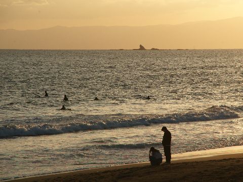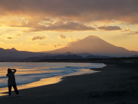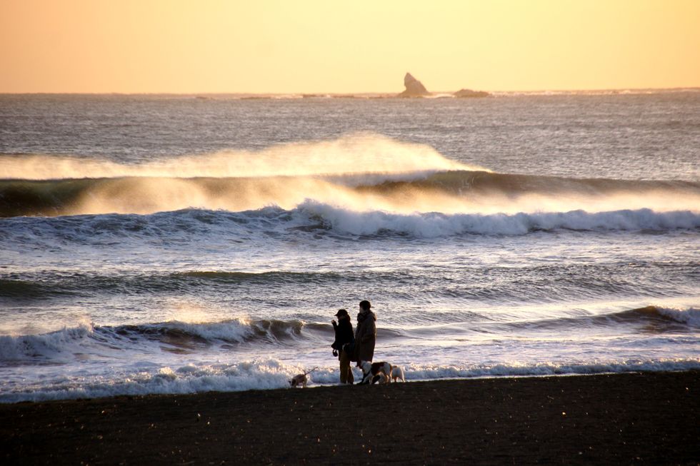 良い写真、撮れたかな?よく夕方の海岸でお目にかかるカメラ女子の方、随分粘って撮影していたが良いショット撮れたかな? |