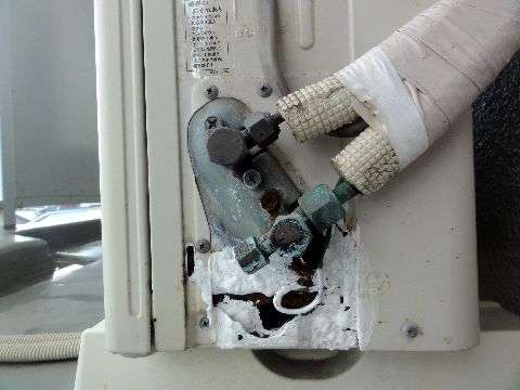 エアコン室外機をタッチペイント冷媒入口部の錆びが酷いのでタッチアップ、まだ5年以上使えないと困るので。 |
