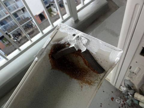 こんな木造で大丈夫?不燃加工の液剤で鉄材の部分が錆びて水が溜まって腐食?こんなの基本的な設計ミス、無理に木材を使うための不燃化工が 不適切という単純な原因、当然ながら設計者と施工者の負担で補修だがいい迷惑でしかない。 |