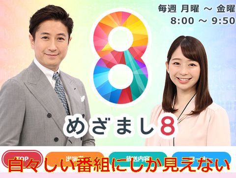 白々しさが隠せない「めざまし8」吉本の芸人の賭博疑惑を報じていたが、フジテレビの不始末(というか犯罪行為)についてはもう取材して報道しないの?という 大きな疑念。 |