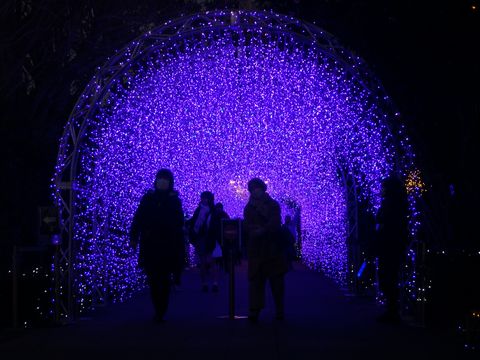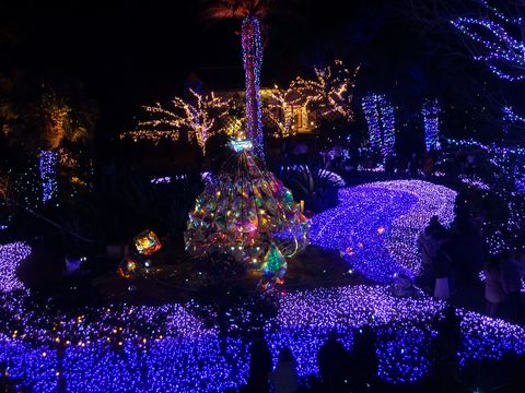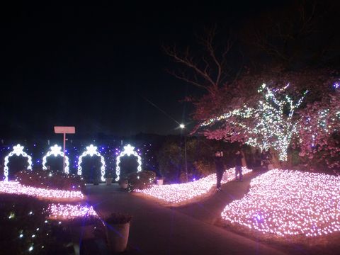 イルミネーション山頂広場のイルミネーションと帰路の通路のイルミネーション。 |