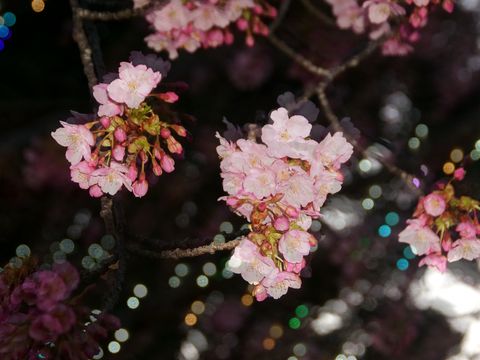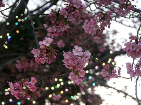 江ノ島の河津桜も咲始め中津宮広場の入口にある桜も咲きはじめ、山頂の河津桜は大分咲いている。 |