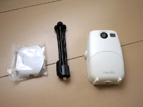 ヤフオクで落札のrecolaが届いた表側は」丸っこいデザインだが裏面はのっぺらぼうという意外な形、さっそく電池(単3-2本)とSDカードを入れて使ってみる。 |