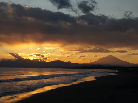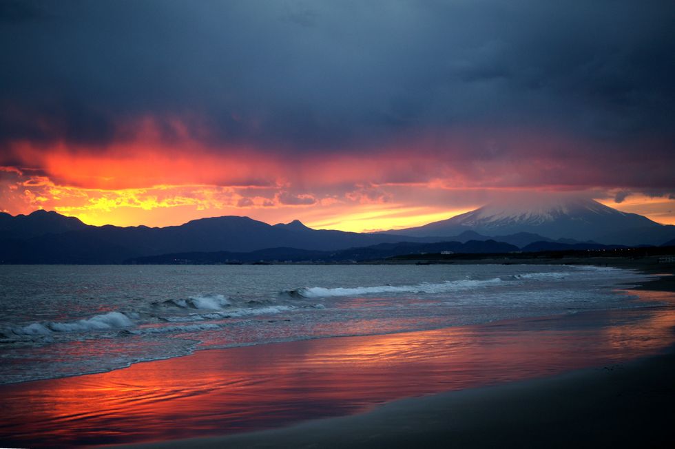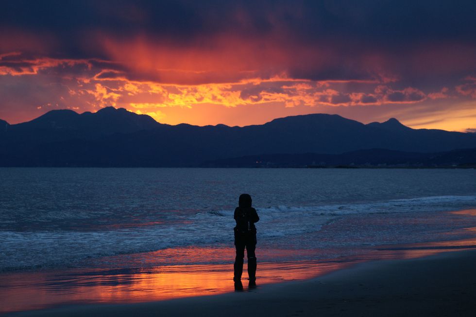 真っ赤な夕景@辻堂海岸雲の多い空だったが夕焼けは綺麗に、海岸の波打ち際にも反射して綺麗に見えた。 使用カメラ:SONY α700+MINOLTA 24-85mm/70-300mm |
