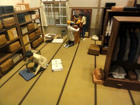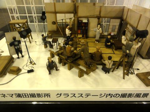アプリコ地下の松竹・蒲田の模型地下のロビーに会った昔の松竹キネマ・蒲田撮影所の模型、上は撮影をしたガラスハウス(自然光を最大限に使って撮影)、下は着付けをしている場所。 現在のアプリコがある一帯は以前は高砂香料の工場があった(今も本社がビルに入居)がその前はトーキーが一般的となる前まで、無声映画時代の撮影所があった。 周囲の町工場の騒音でトーキー撮影に困難をきたして大船へ移転し、蒲田は閉鎖となった。移転した大船撮影所も今はなくなり、跡地には鎌倉女子大と鎌倉芸術館が建っている。 |