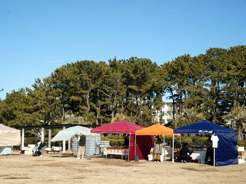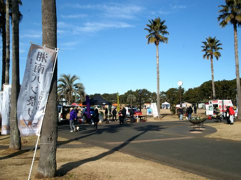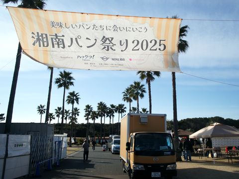 海浜公園では「湘南パン祭り」が開催中41軒のパン屋が集まっての「パン祭り」、まだ準備中だったが早くも列ができているところも。 |