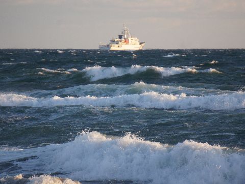 今日は波が静か昨日の大荒れの海とは打って変わって穏やかな海、サーフィンには波が小さい? |