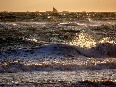 大荒れの海昨夜の「春一番?」の強風で海は大荒れ、大きな波しぶきが続けてやってくる風景は壮観。 |