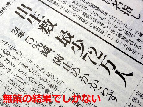 無策の結果で出生数の連続減少続く「趣旨高齢化対策」といってはいるが結果がしめす「無策」だったという結果、投じた税金は誰かのポケットに入ったの だろうけど。いつものたっぷり中抜きで必要なところへは届かない。 |