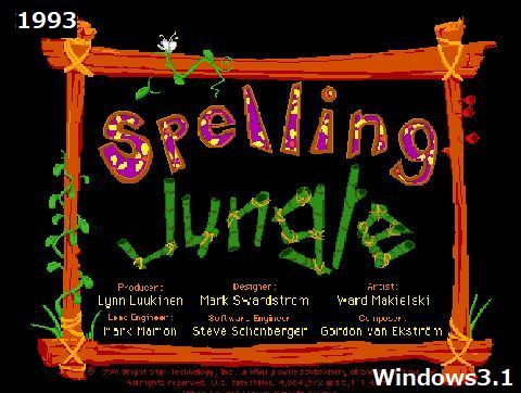 娘たちが1993年頃やっていた英語のゲームSpelling Jungleというゲーム、字を集めて単語を作ったり、発音を聞いてスペルを正しく入れるという子供向けの 英語学習ゲーム、ヒアリングの練習ができるのは良くできていると感心した。娘たちも一生懸命にやっていて発音を覚えた。 |