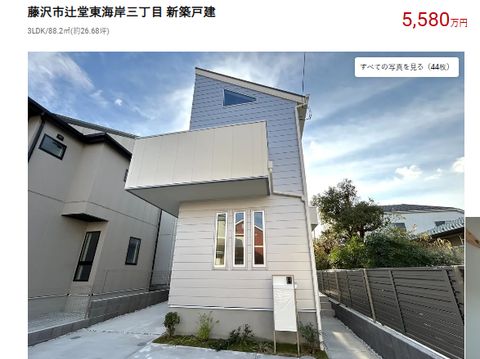 こんな戸建で5千6百万円近い、買えるわけないが近所らしいが古い家を壊して戸建を建てるだがそのままの広さでは1億数千万となって到底売れないので3分割して狭い 3階建てとなるのが普通、これでも6千万円近い価格。近隣の中古マンションも一時から比べると4−5割も高くなっている。 |