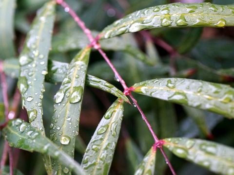 水滴のついた植物たちまだ細かな雨が降っているので水滴の綺麗についた葉が撮影できた、50oマクロ使用。 |