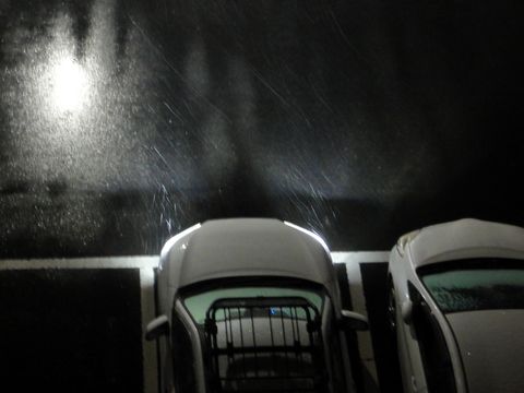 夕方からは雪が降り出した午後から冷たい雨が降り始めたが、夕方からは雪に変わった、天気予報通り。 |