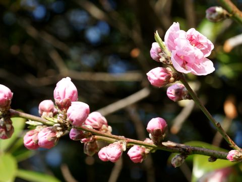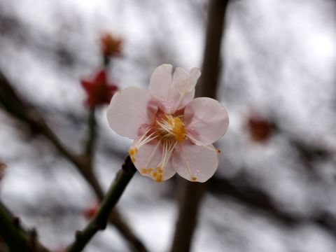 やはり、これは梅の花?木の幹を見ると桜の若木にも見えるのだが咲くのが早すぎ、花の付き方は梅のようだし。 |