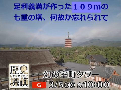 忘れられた足利義満の109m七重の塔昨日の「歴史探偵」で取り上げれれていた足利義満の高い塔、早期に雷で2度消失して忘れ去ら得たということらしい。 初期は良い政治を行い対立関係にあった教徒団体(大きいのは比叡山)や武士団との関係を改善し、北朝を再建して南北合体も 実現させたのだが何故か後世は嫌われた? |
