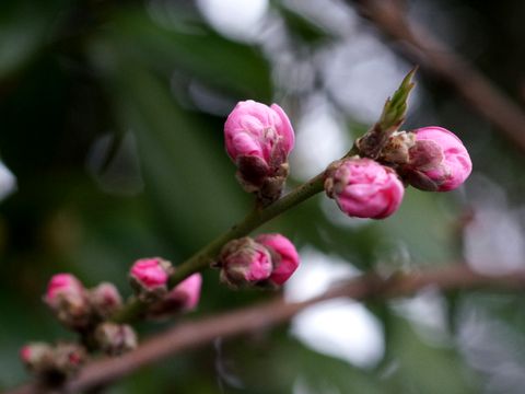 蕾が膨らんだ桜?梅ではないが公園脇に植えられている若木、木を見ると桜のようだが。 |