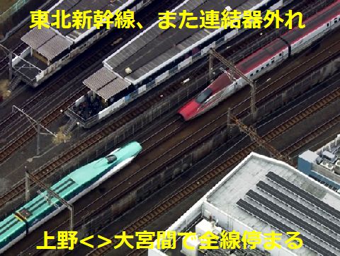 また東北新幹線で連結器外れ去年のトラブルは工事で金属くずがスイッチに接触した事が原因とされたが(杜撰な工事とチェック)、今回は一体何? 既存路線でも大月駅で連結して発車した211系が連結外れトラブルがあったと公表、在来線でもあるのだと驚き。 東北新幹線では原因判明・対策完了まで連結運転は中止とするが利用者には大迷惑に違いない。 |